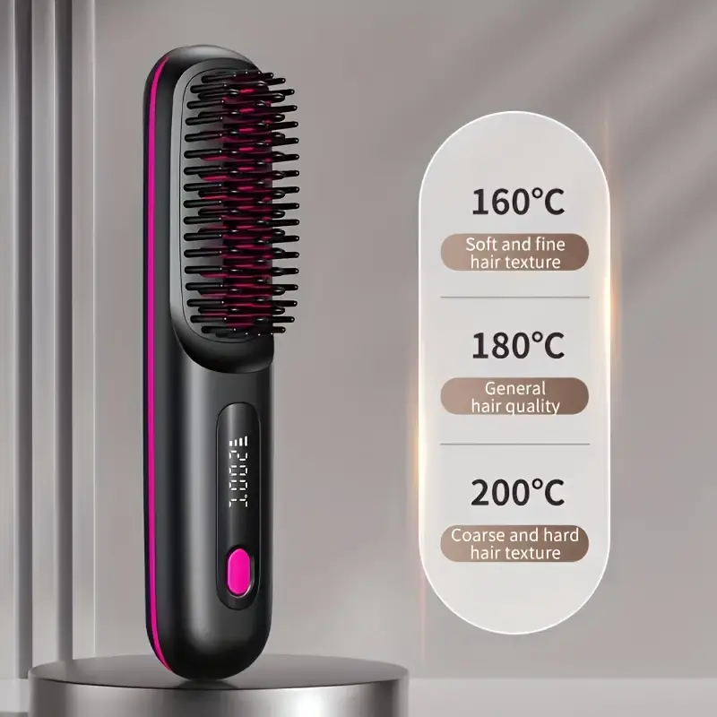 Portable Wireless Hair Straightener Comb - USB Charging, 3-speed Temperature Control, Negative Ion Technology, Long-lasting Luster, LED Display Screen, Lightweight, Perfect For Travel